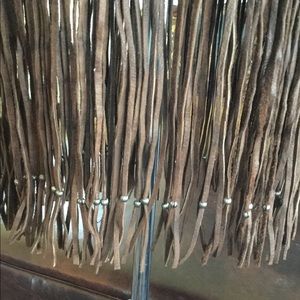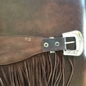 Beautiful designs on silver buckle. Leather waist is very intricately done. Tons of beautiful leather Fringe with beading towards the end make this belt a must have!