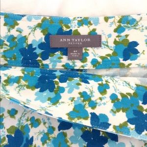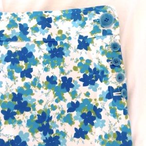 NWOT Adorable Ann Taylor blue & green floral print skort, sz 6 petite. Soft polished cotton fabric in a rich floral pattern. The perfect summer weight w/ a hint of stretch. Self waistband w/ 5 cornflower blue buttons at left side. Skirt lays smoothly. Very comfortable.