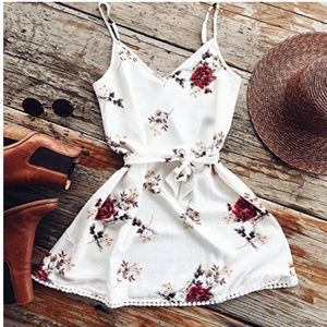Beautiful, breathable cotton dress is perfect for spring and summer. Featuring a self-tie belted waist and delicate crochet detailing around the hemline.