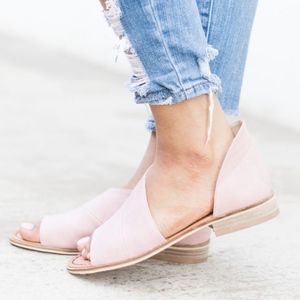 These blush flats are made with faux leather and feature a side cutout, peep toe, and cushioned insole.