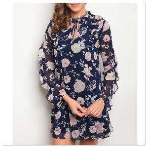 🚨 SALE! Navy Floral Ruffle Sleeve Dress