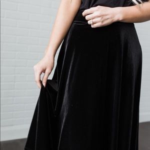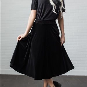 Black velvet midi skirt