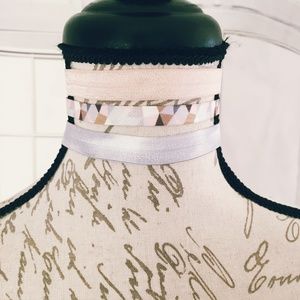 Still has the $15 price tag on it. Hypoallergenic. 11"-13" very stretchy. Ombre silver design, solid blush, geometric blush and silver. Wear one or several at a time.