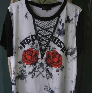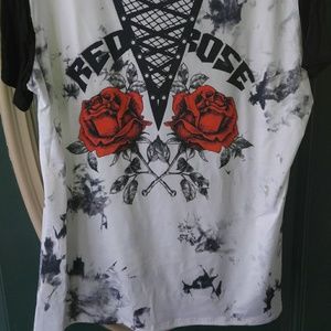 *Plus Size* Roses print tie dye top