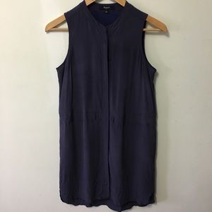 Dark blue silk dress from Madewell. Button down front. Option to tie at the waist. Fits well on petite frame! Worn a few times, but in great shape!