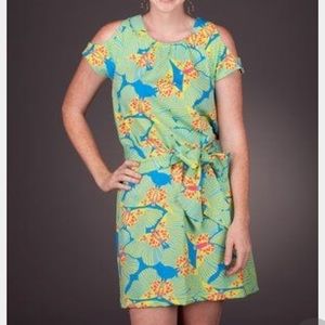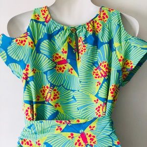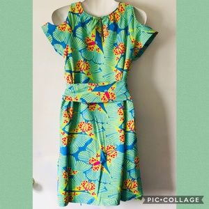 Boutique-Tracy Negoshian green/blue/yellow/pink butterfly dress