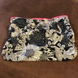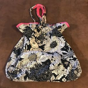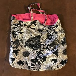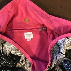 Liberty of London for Target black white and pink tote. Excellent used condition. I have looked for any imperfections and see none. It is a little wrinkled, and the flat piece that forms the bottom is a little bent. I see no tears or stains.