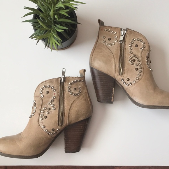 Steve Madden embellished bootie. Size 6.5. Some studs are missing and shoes show some wear (see photos). The missing studs are on the inside of the shoes so they aren’t super noticeable when wearing them.