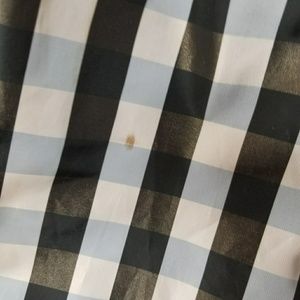 Gorgeous chic checker double breast trench coat with attached belt. Coat is lined. Has a teeny tiny stain on left side of coat near left pocket, hardly noticeable. 100% Polyester.