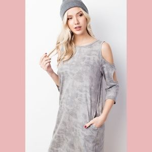 Tie Dye French Terry Cutout Cold Shoulder Dress With Pockets