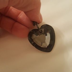 This BCBG necklace has a large heart pendant that looks like a black crystal. The chain us gunmetal. Measurements are in the pictures, please ask any questions. This is part of my 3 items for $10 special.