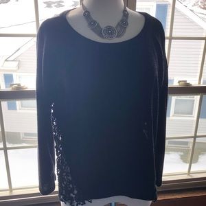 Super cute black sweater top by Vintage Havana. Purchased at high end boutique in ski resort town. Never worn, sadly 😭! Beautiful knit lace detail on both sides makes this a stand out piece! Comfy and chic!
