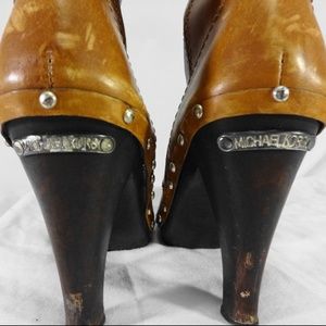 Gently owned MICHAEL KORS women's tan heeled boots, some wear on item (see photos), size 5, exact same item shown will be shipped.