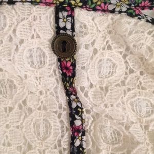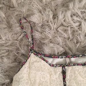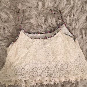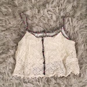 Brand new never worn! White lace crop top, the top is lined as shown in the last picture. Beautiful floral print trim. Faux button detail on front 😍 make me an offer!