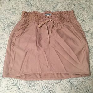 Beige drawstring mini skirt with pockets and elastic waistband. Great condition, only imperfection is light stain on one of the drawstring laces (but not noticeable! See third pic)