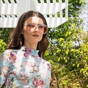 Super chic & trendy oversized aviator sunglasses w/ gold metal frame & colored oversized lenses ONLY PINK LEFT 💗Adjustable nose pads. Clear tinted lens.