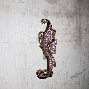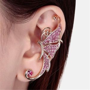 Gold Pink Crystal Butterfly Ear Cuff Wrap Earring