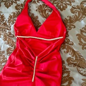 Red long shinny silk dress with Diamonds all in one piece never worn.