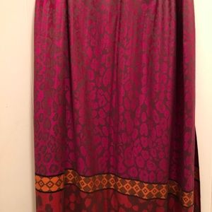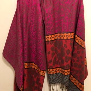 Silky feeling, wear it as a scarf or large enough to wrap around your shoulders. Goes great with a black dress.