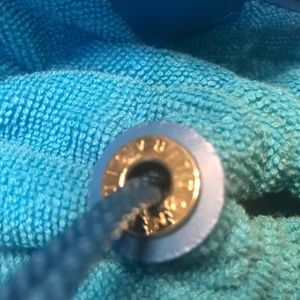 Authentic! Limited Edition Bright Blue Epi Plage Louis Vuitton Mini Lagoon Bay Tote with brass hardware, dual flat top handles, tonal smooth leather trim, protective feet at base, blue terry cloth interior lining & drawstring closure at top. Includes dust bag. Date code CA0013