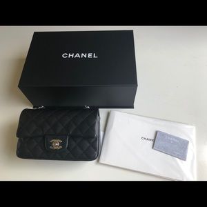 @ceeboutique I will send pics of the first few digits of the authenticity code(not full, posh will authenticate it for you anyways), and the receipt. For size, you should google images as I dont model. 😭 It’s the popular chanel rectangular mini.
