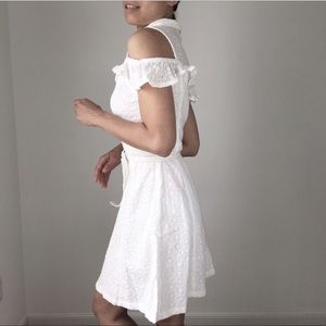 White cut out shoulder summer dresss with belt. Button up dress. 100%cotton. Non sheer fabric. I'm wearing size s for cover shot. I'm size s body type 5'7tall. Size S: Bust : 34, length 33". Waist 28". Size M; 35”, length33”. Size L: 36”, length 34”. #taylorswift