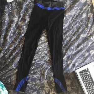 Black and blue athletic leggings