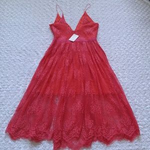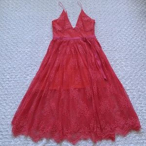 Free People Match Point Watermelon Midi Dress.Half Line, has Spaghetti Straps.Size 12.Length =37".Armpit to armpit = 17", Waist=30"