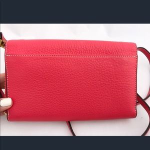Tory Burch Perforated Logo Flat Wallet Leather Crossbody Handbag Red Ginger
