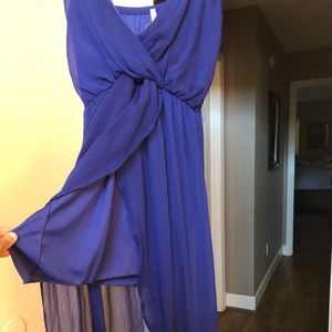 This royal blue dress is to die for. Short in the front and long in the back for comfort purposes. Can be worn formally or casually. Straps adjust for a perfect fit. Worn once for a photoshoot and is in perfect condition.