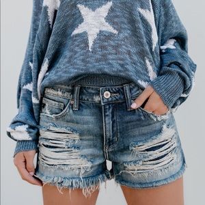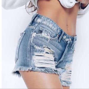 🔁 Coming up on that time of year! My favorite brand coming in a must have pair of shorts. Heavily distressed and so hot you will keep heads turning! Fraying throughout,including the pocket and belt area as well as the trendy frayed hem.