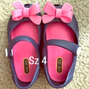 Navy blue w/ pink bows- only worn 1-2x