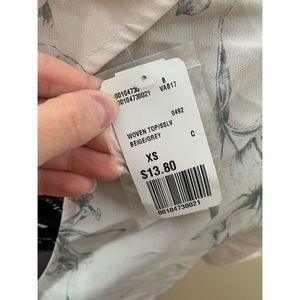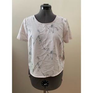 This is a perfect spring top from Forever 21! It’s an off-white and gray floral printed short sleeve blouse. The flowers on the top are monochrome lilies. The cut of it is like a t-shirt but the material is kind of crepe-like. It is slightly cropped, has an open and twisted back. It is a size XS and brand new with the tags still attached! 🚫NO TRADES.🚫
