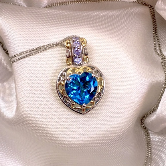 💎Gorgeous eye-catching Genuine Marambaia Topaz and Tanzanite Heart Pendant!