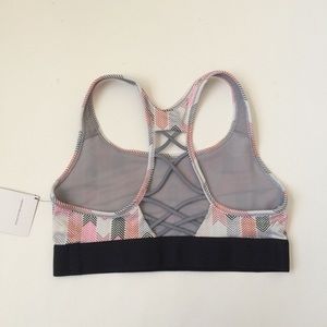 NWT Victoria's Secret The Player Strappy Racerback Sports Bra in Laced Arrows, size medium. Gorgeous laced up racerback, cute arrow print and medium support are just a few of this sports bra's amazing qualities. Features a white base with trendy orange, green, pink and gray arrows. Will match with a variety of outfits :) Bundle and save ♥️