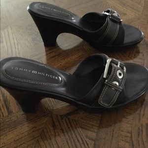 TOMMY HILFIGER Brown slide on sandals with silver buckles worn a few times very cute size 7