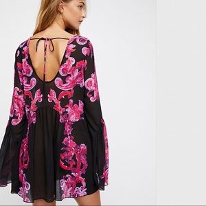 FREE PEOPLE printed Symphony slip Dress - lightweight, textured and printed flowy slip featured in an oversized silhouette. Long bell sleeves, adjustable tie at the back neck, sheer. NWT