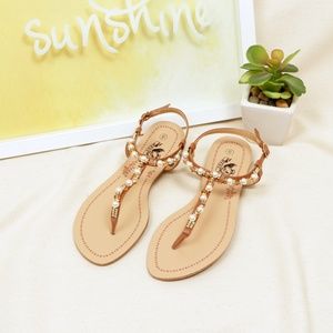 Tan Jewel Rhinestone Summer Thong Sandal Mia-01