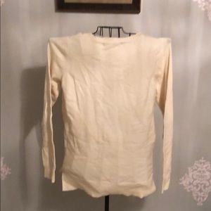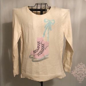 Super soft sweater with ice skates on the front. Off white color. 60% Cotton 37% Nylon 3% Spandex