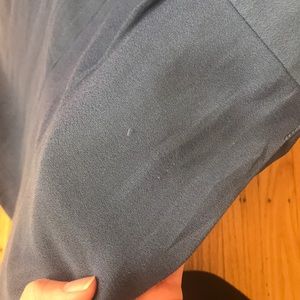 Short sleeve dress, lined skirt, no zipper, and has front pockets. Fits true to size and flowy top. Hits about 2 inches above the knee (I’m 5’5”) slight water stain in the front and a tiny snag in the skirt