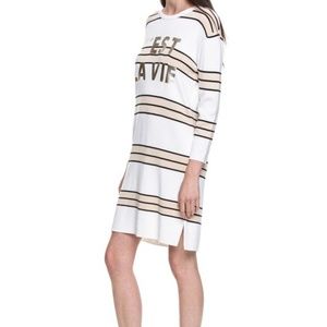 C'est La Vie Pink Stripe Dress. Model is wearing a Small