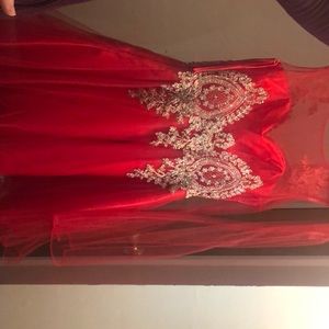 Short red prom/homecoming dress. It has gorgeous iridescent rhinestones all over and it comes with a red shawl!
