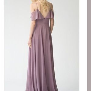 This beautiful Jenny Yoo gown was supposed to be worn as a bridesmaid dress. The color is called Black Current (a dark eggplant color) first two photos are posted just to show the style... COLORS BELOW THE FIRST TWO PHOTOS ARE TRUE. Never worn, NWT, and NEVER ALTERED. Size 0 and is a beautiful chiffon fabric with cold shoulder sleeves. This dress is very on trend for prom or your future bridesmaid dresses. Price is firm. Photos from the Jenny Yoo website.