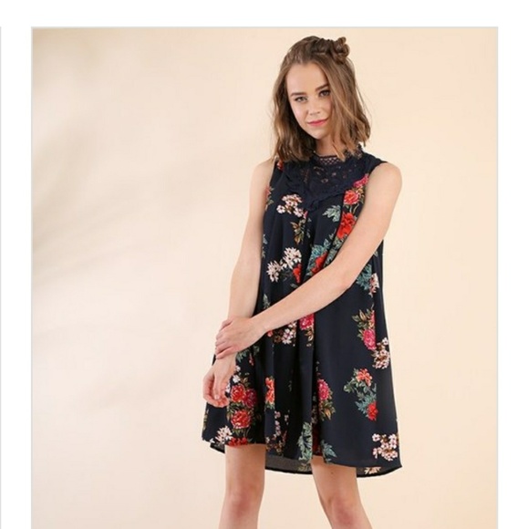 Sleeveless Floral Print Dress with a Crochet Neckline, Back Keyhole, and Ladder Trim