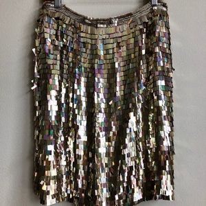 French Connection Gold Shimmer Fringe Skirt NWOT