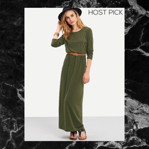 ARMY GREEN LONG SLEEVE POCKETS MAXI DRESS