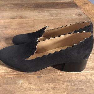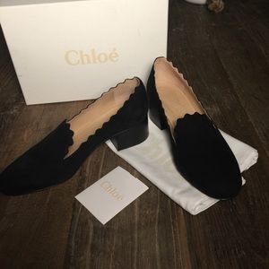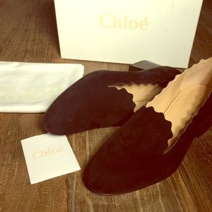Simply gorgeous and brand new Chloé black suede scalloped edge Lauren pumps. Comes with box, card and dust bags. Size 39(9)