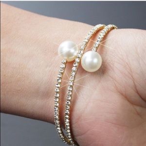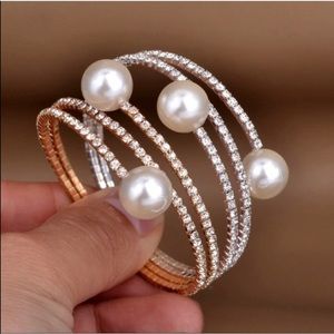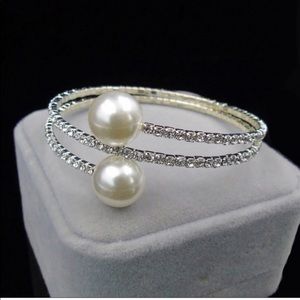 GALLIANT BLING IS AN AMAZING FLEXIBLE BANGLE WITH 2 FAUX PEARLS AND CRYSTALS IN A WRAP AROUND STYLE IN SILVER TONE ONE SIZE FITS MOST ❌no trade price firm❌