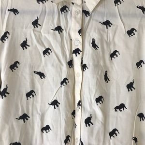 Asos petite white elephant print shirt, size UK14/US10. New, never worn. Super cute elephant print all over the shirt. Marked as petite US size 10, I wear US size 6, sometimes size 8 and this fits loose on me. Length approx. 25.5”, bust 22”, sleeve 19”. 100% viscose. The material wrinkles a bit bc of this fabric. No trade, PayPal or hold. No lowballing please. Thanks!