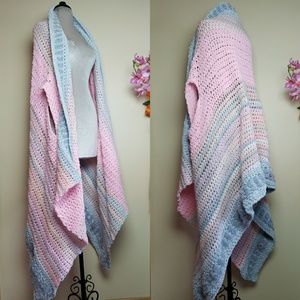 Bohemian Pastel Rainbow Crochet Midi Vest Jacket